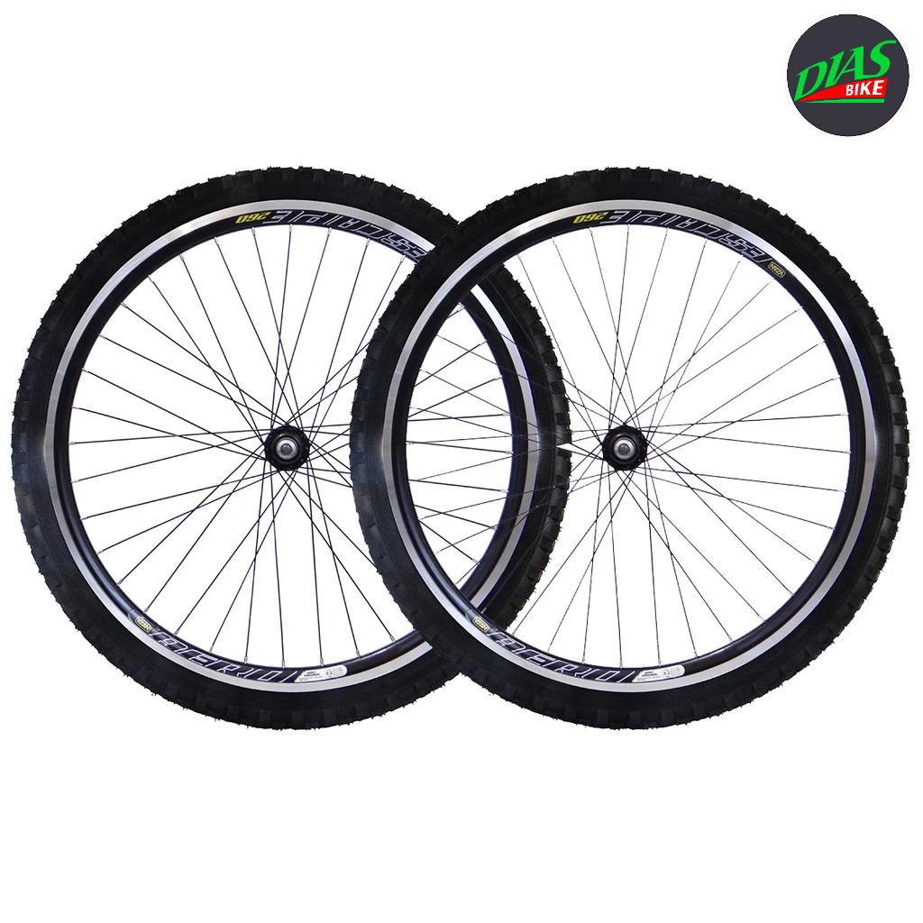 Par Roda Aro 26 V-Brake Aero Folha Dupla Alumínio 36F + Pneu