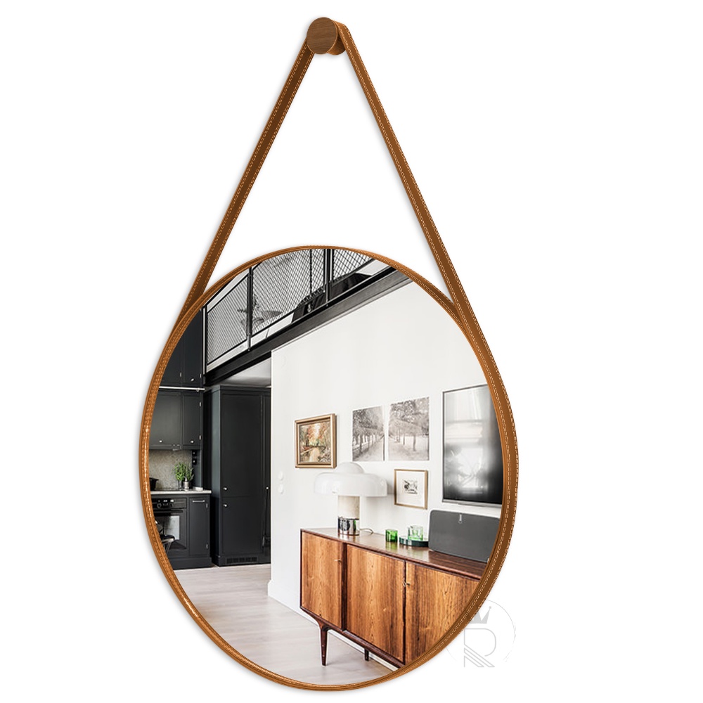 Espelho Adnet Redondo Decorativo Suspenso c/ Alça em couro Ecológico 30cm + Pino Suporte GRATÍS - Casa Domo