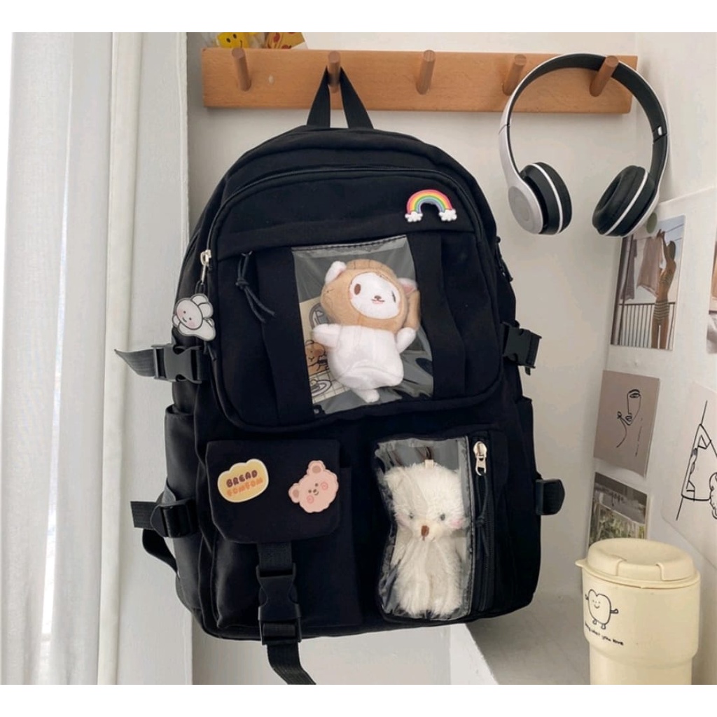 Mochila para meninas japonesas e coreanas mochila de estudante de ensino médio de grande capacidade com pingente e crachá