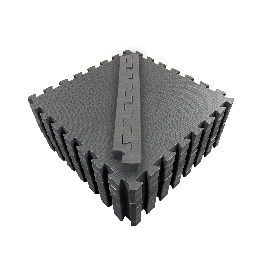 Kit 12 Tapete Tatame Eva + Bordas de Acabamento Loja da Maria Fitness Bebe 50x50x1cm 10mm Cinza Claro