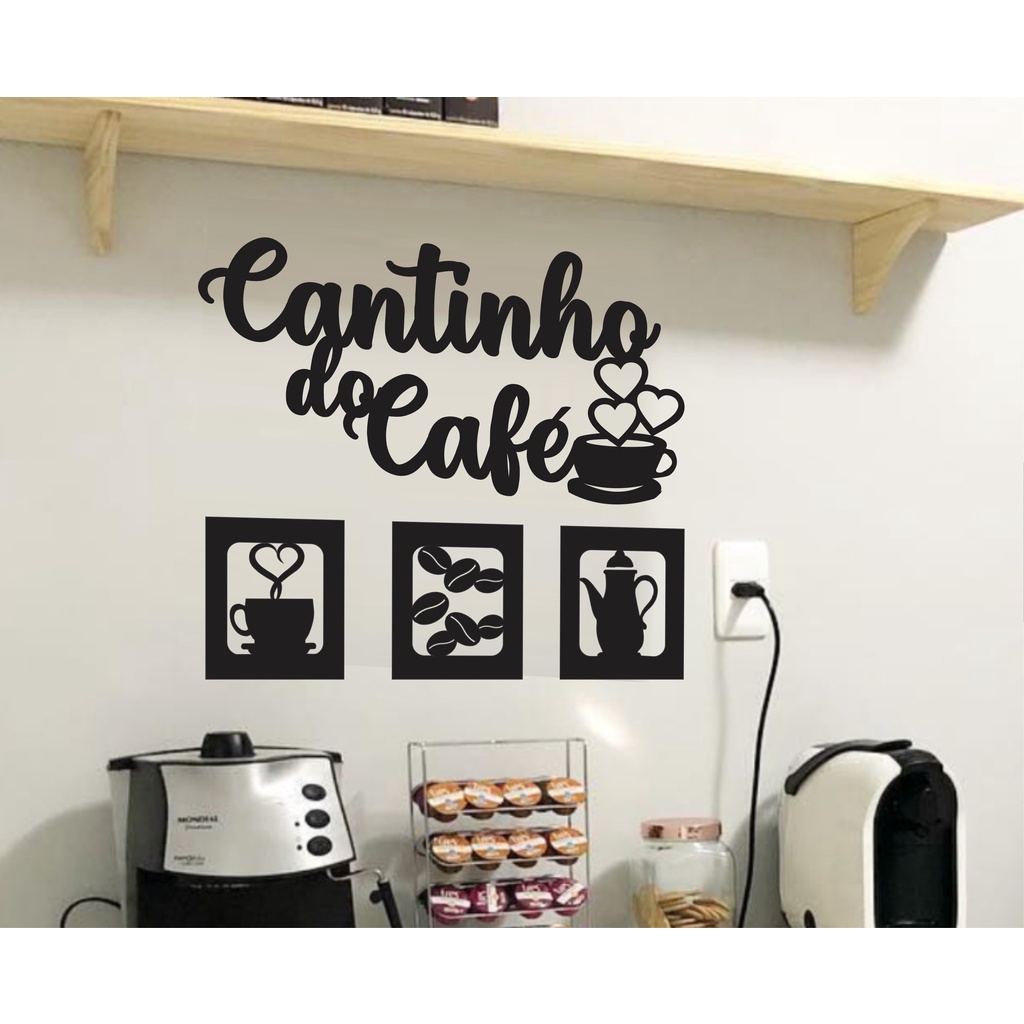 Kit Cantinho do Café 4 Peças 30cm Decoração Cozinha Mdf 3mm C/Dupla Face