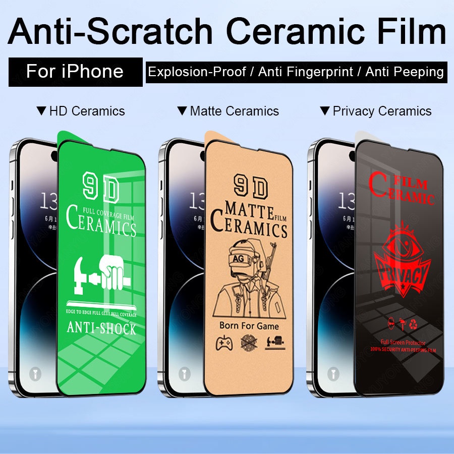 【 4 Em 1 】 Clear/Fosco/Privacidade Protetor De Tela De Filme De Cerâmica Vidro Temperado Para iPhone 11 12 13 14 15 Pro Max/X XS XR Plus/13 12 Mini