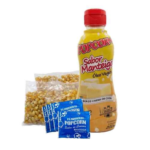 Milho de Pipoca 200g + Óleo Popcorn sabor Manteiga 200ml + 05 sachês de Manteiga