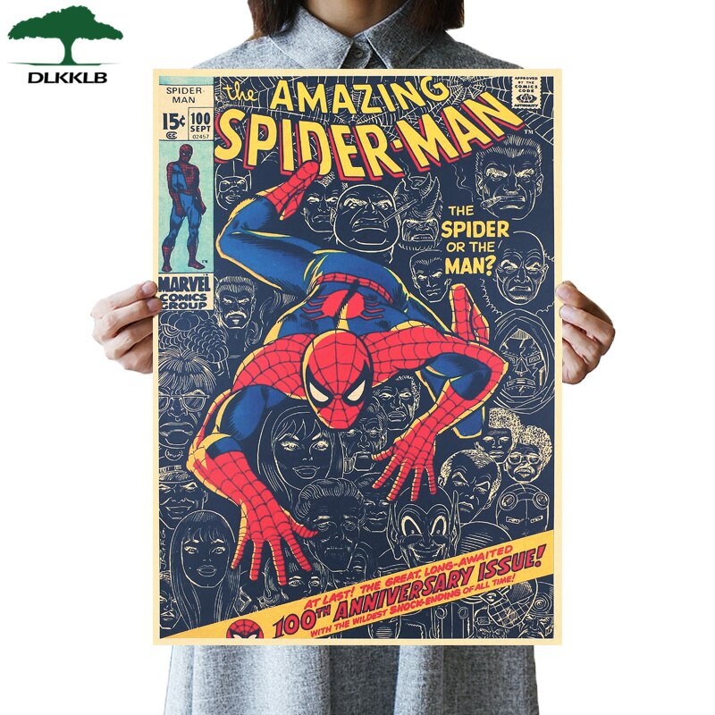 DLKLB Adesivo De Parede Clássico Anime Filme Comic Spider-Man Vintage Dormitório Decoração De Quarto Pintura 51x36cm