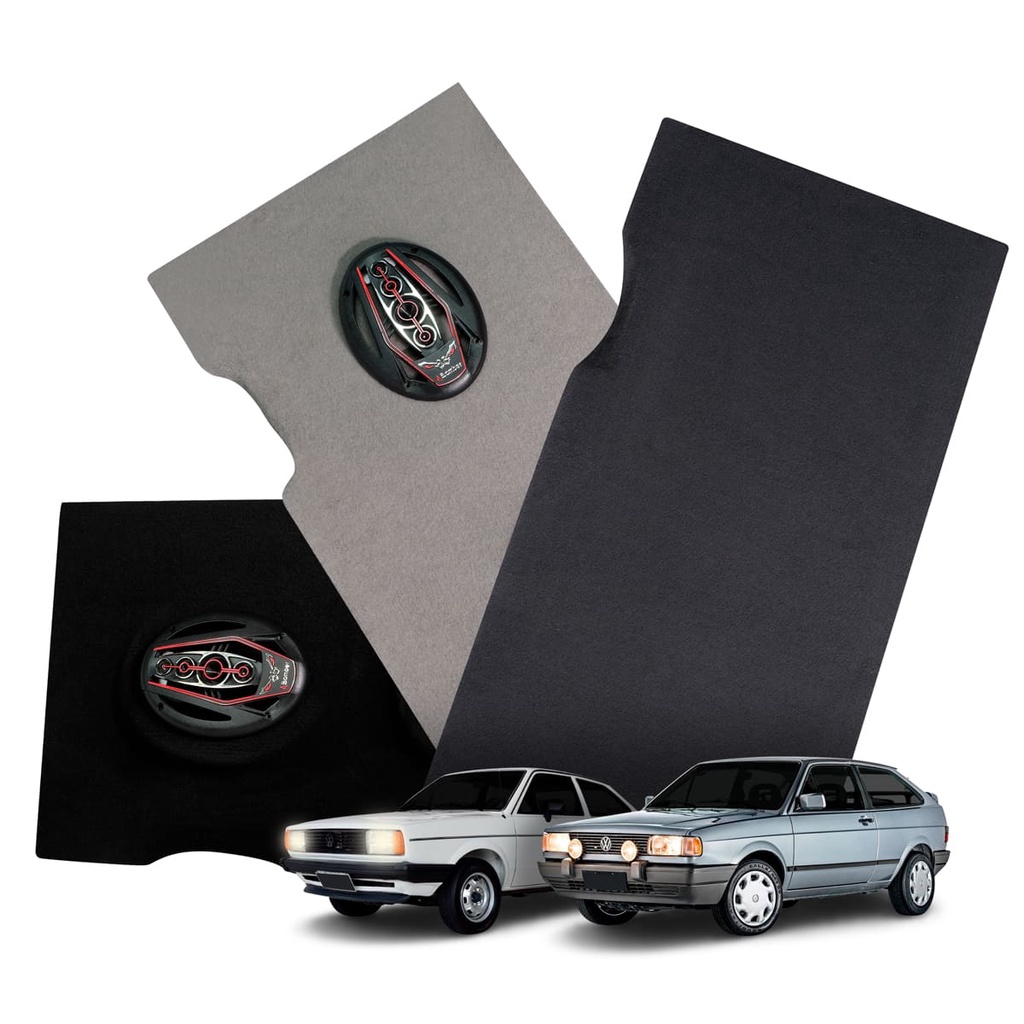 Tampão Porta Malas Gol G1 Quadrado GTI 1989 a 1994 Carpete Grafite Preto Furos Falante 6x9 Bagagito