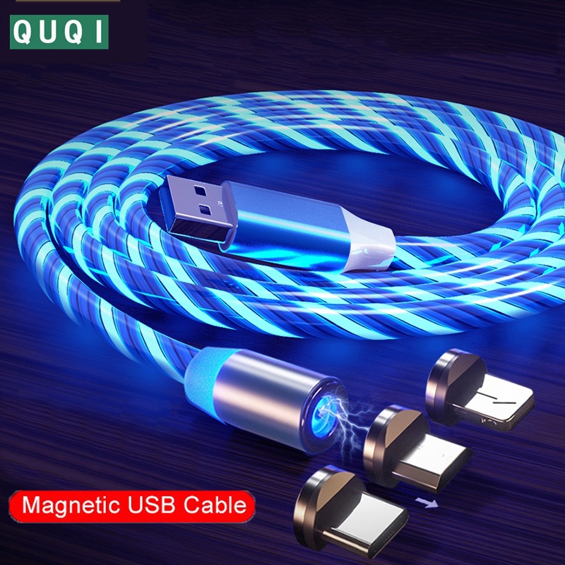 3 Em 1 Cabo De Telefone Móvel Luminoso De Carregamento De Corrente Magnético USB C Para Samsung LED Micro Tipo Iphone