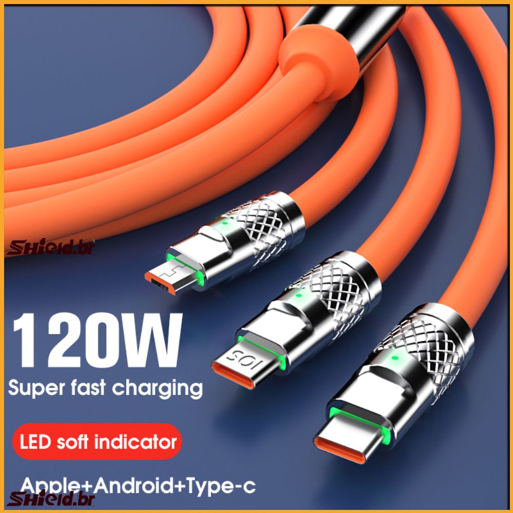 Cabo 3 Em 1 120W 6A Super Rápido Tipo C De Silicone Líquido Carregamento Micro USB Para Cabos Carregador Huawei Do iPhone