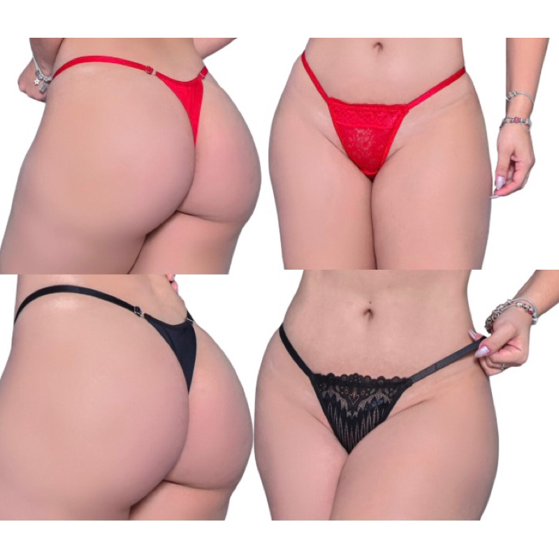 Kit 3 Calcinhas Fio Dental Sexy Duas Alças com Regulagens String Bicolor algumas com Renda Neon