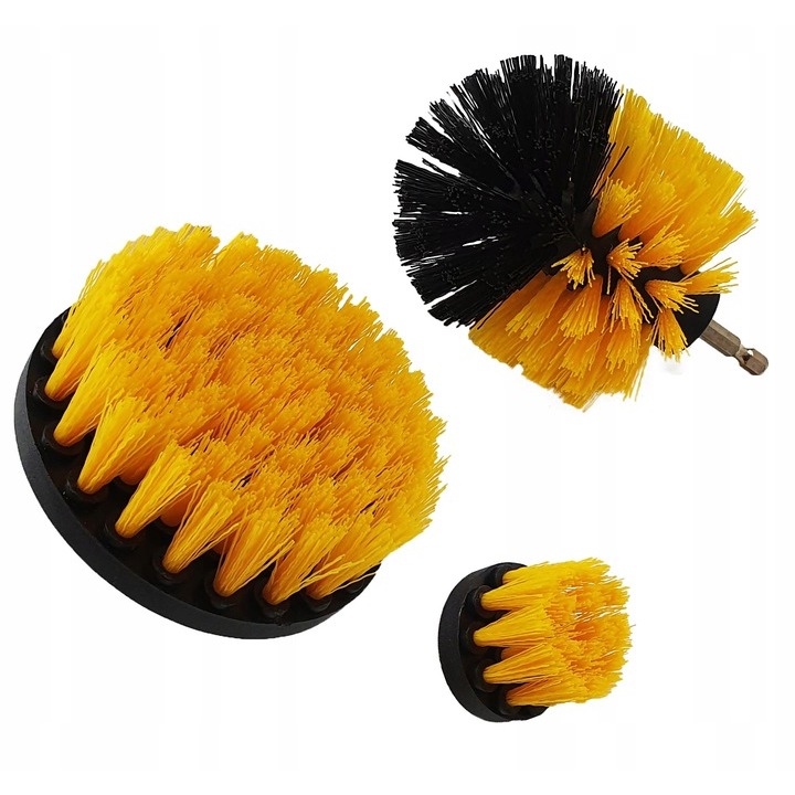 Kit 3 Escovas de Limpeza Pesada Rotativa Para Parafusadeira Furadeira Estofados E Sofás Roda de Carro, Pneu, Carpete, Rejunte de Parede