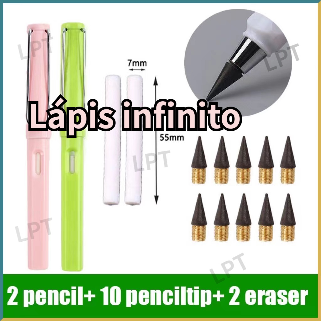 M&P 14Pcs Lápis ilimitado /Lápis Eterno Infinito Escrita Metal Apagável HB Tinta Kawaii Material Escolar