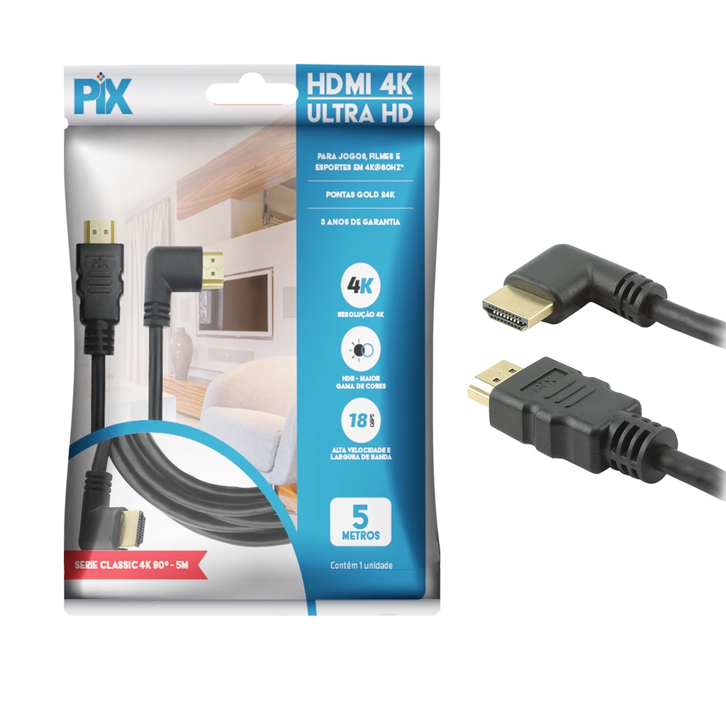 Cabo HDMI L Pix, 5M, 90 Graus, Blindado, 2.0 Ethernet, 4K - 3D018-3325