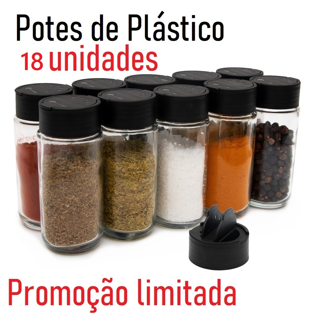 Kit 18 Potes Tempero Condimentos Tampa Dosadora Dupla de Plástico - 100 ml