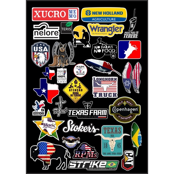 Kit 5 Cartelas de Adesivo Country para Garrafa De Terere Moto Capacete
