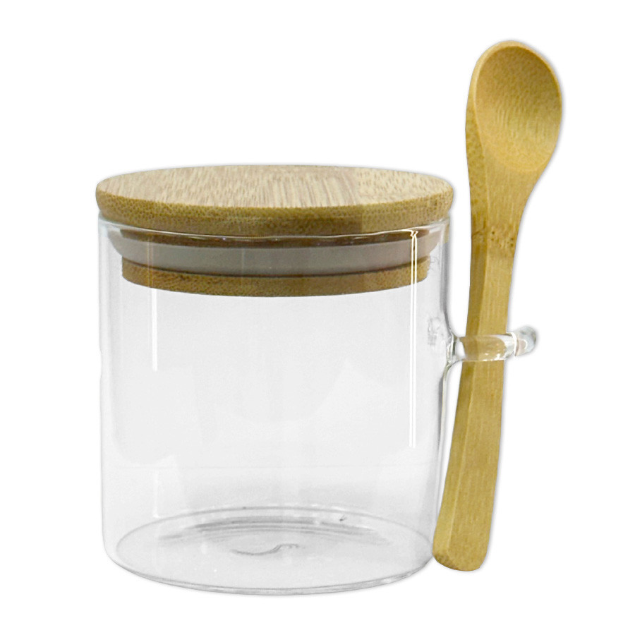 Pote de Vidro Hermético com Tampa e Colher de Bambu - 8x8cm - 290ml - 1 unidade - Rizzo