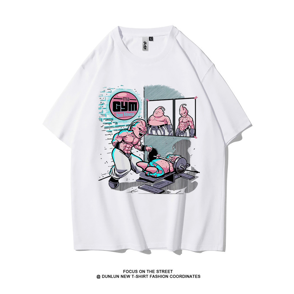 Dragon Ball Co-Branded Star Fitness Camiseta de manga curta Majin Buuu Homens Mulheres ins Street Wear Anime Casal de meia manga 01
