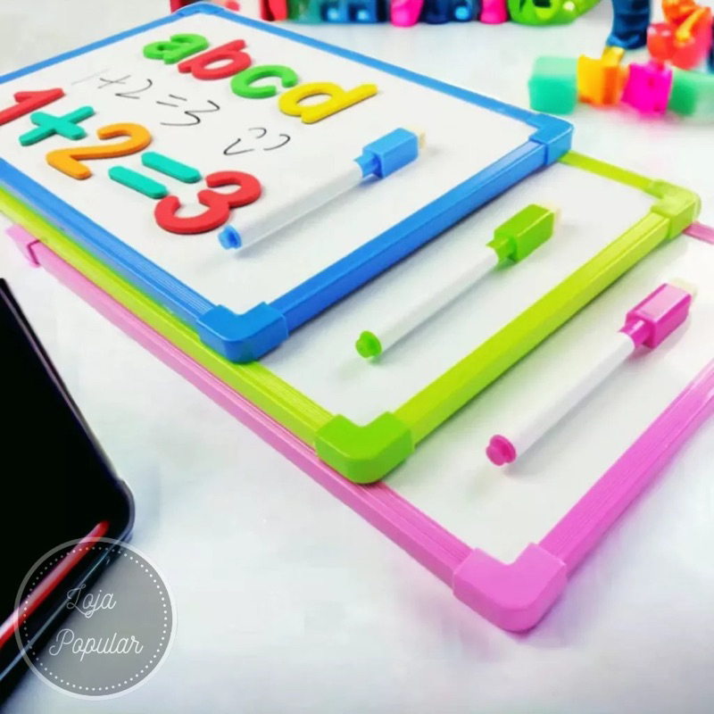 Lousa de Pendurar na Parede para Escrever Quadro Branco Magnético com Caneta para Anotações Escolar Oganização Recreativo e Brincadeiras Cores Colorido Azul Rosa Verde Roxo