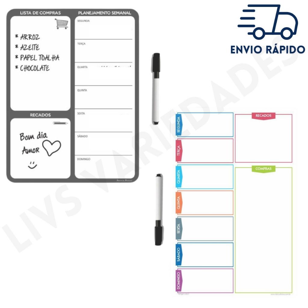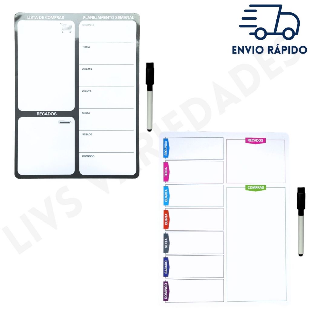 Ímã De Geladeira Planner Semanal Porta Recados Quadro Magnético Anotações Lousa Com Caneta