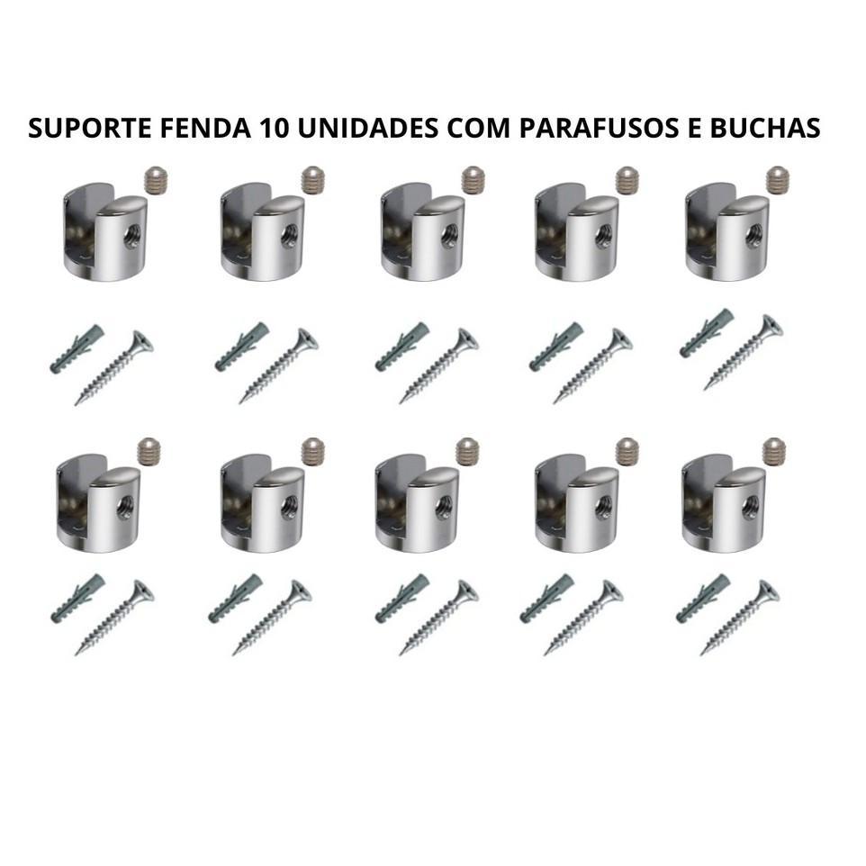 10 Suportes para prateleira/cantoneira de Vidro/ Madeira tipo Fenda em Zamac com parafusos e buchas incluidos (4mm/6mm/8mm/10mm/12mm)
