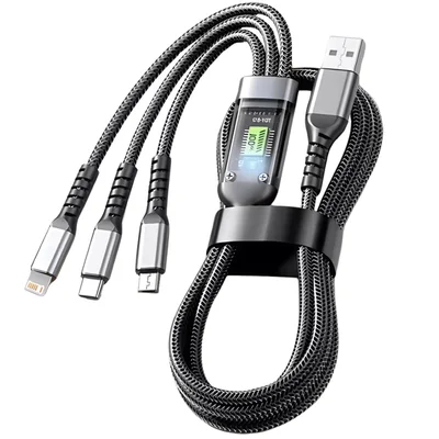 Cabo Carregador Turbo 3 Em 1 Usb 100w Tipo-C / V8 / Linghtning