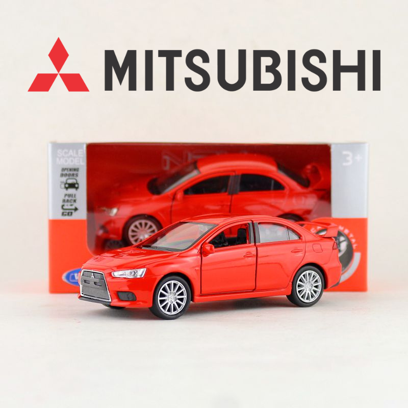 Miniatura Carrinho de Ferro Coleção Mitsubishi Lancer Evolution X Welly Escala 1/36 Abre as Portas - Envio Imediato