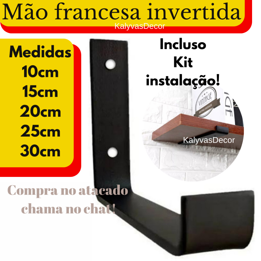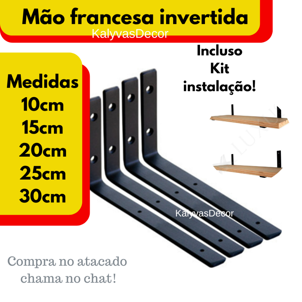 4 Mão Francesa Invertida 10cm 15cm 20cm 25cm 30cm Reforçada Industrial prateleira