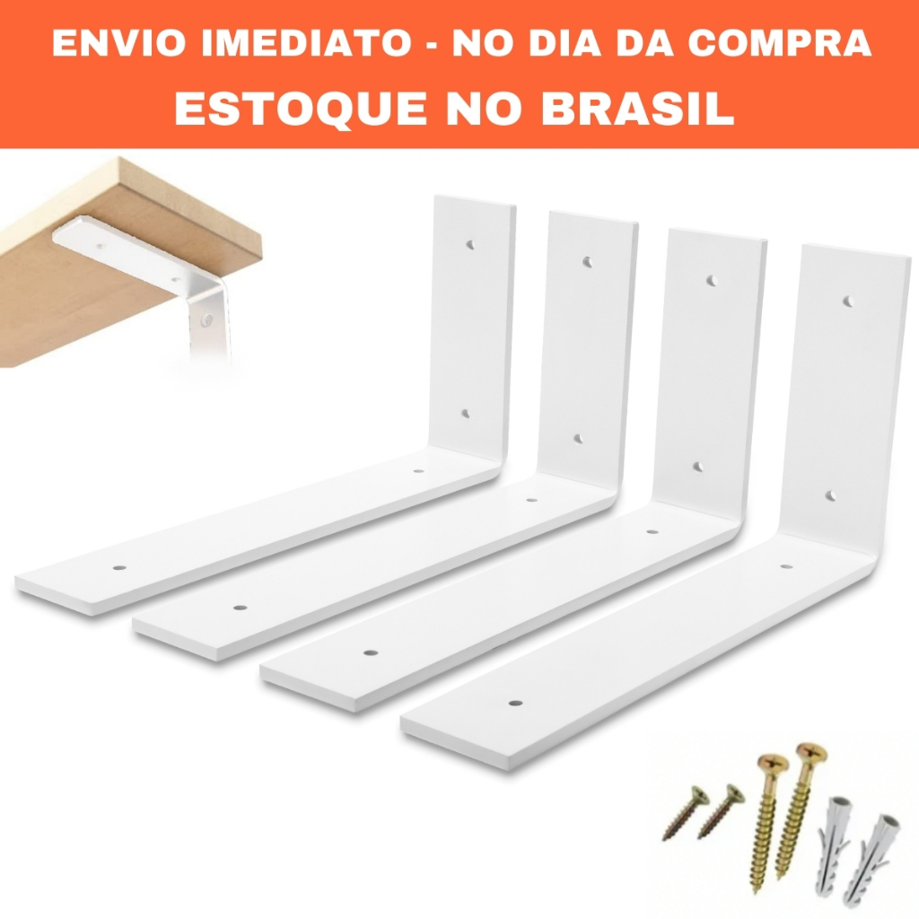 4 Mão Francesa Invertida Suporte Cantoneira 10cm 15cm 20cm 25cm 30cm Prateleira Ferro Reforçado Base Reta