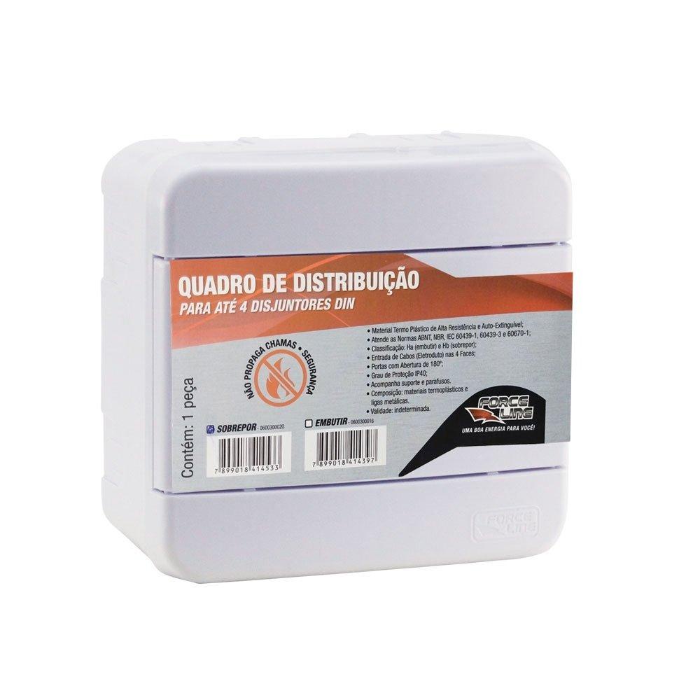 Quadro de Distribuição P/Sobrepor P/4 Disjuntores DIN Branco - Force Line
