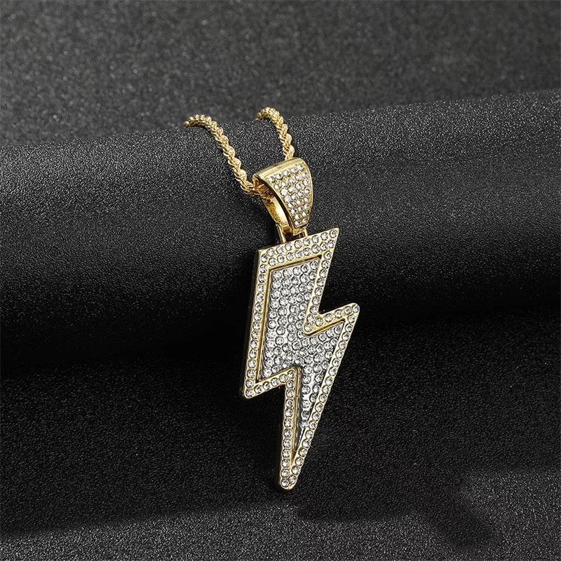 Corrente Colar ICE hip hop Raio Relâmpago Trovão cravejado com zircônias brilhantes