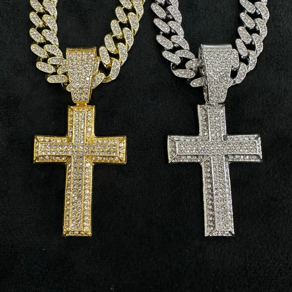 Colar corrente Ice cravejado com pingente Cruz crucifixo Modelo Ultra Premium Hip Hop