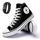 Tenis Cano Alto Longo Casual Star Botinha Feminina Kit + Relogio