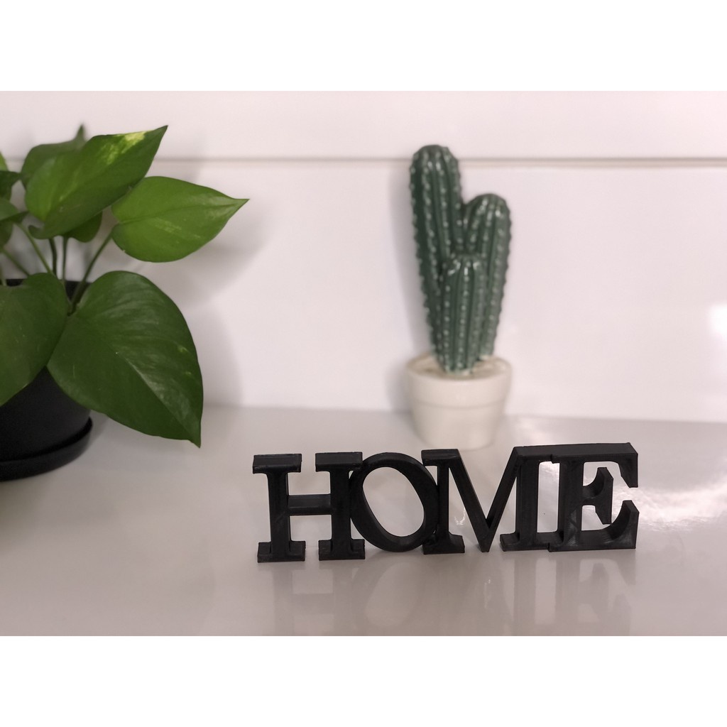 Decoração Palavra de Mesa HOME + Mini Vaso com Pezinho Suculenta Planta Natural ou Artificial Kit com 3 Enfeite Sala Estante Rack