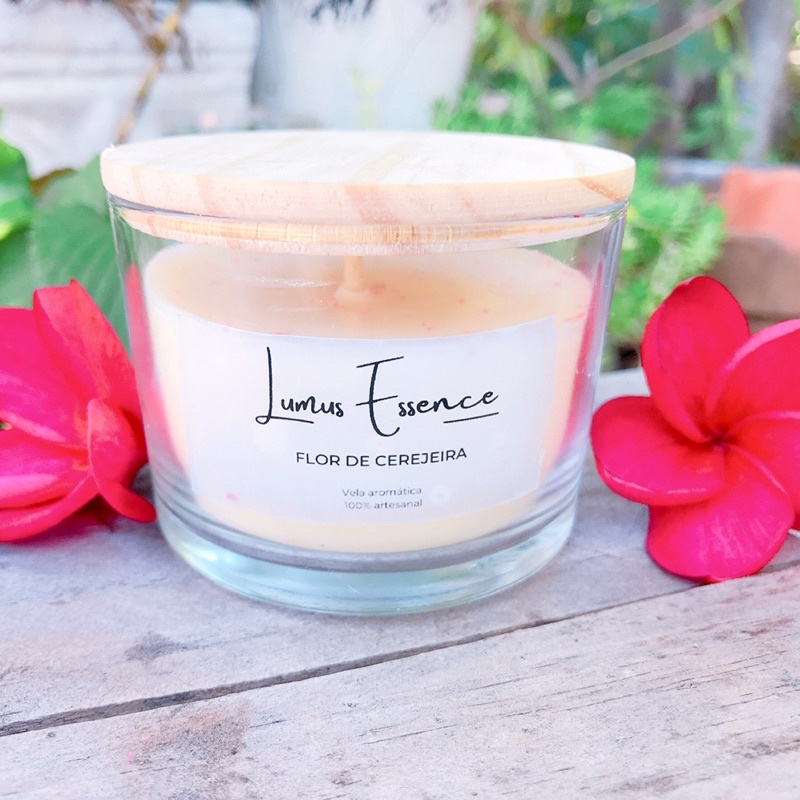 Vela aromática flor de cerejeira artesanal vegetal cera de coco