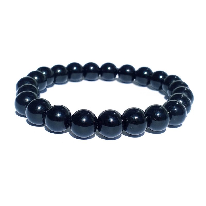 Pulseira De Pedra Ônix Negro Natural Esfera Tamanho 8 Mm - Proteção