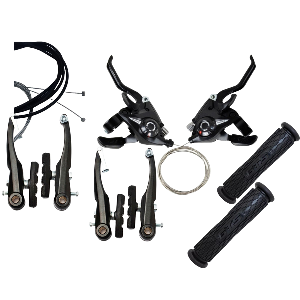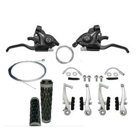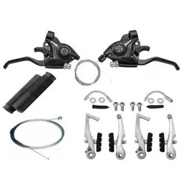 Kit freio V-brake + trocador Rapidfire 7v 21 marcha alumínio + cabo e manopla bike bicicleta