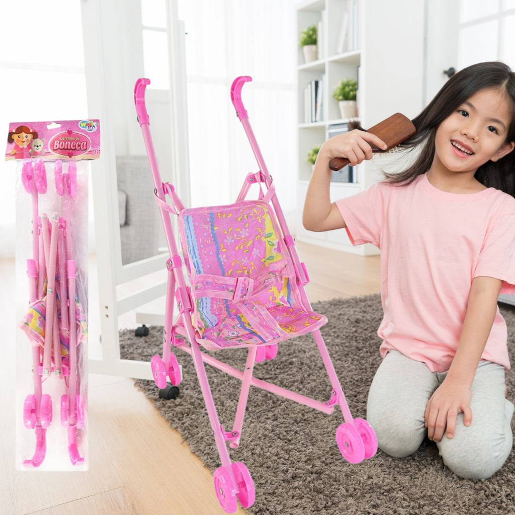 Carrinho De Boneca Infantil Dobrável Rosa Menina Bebê