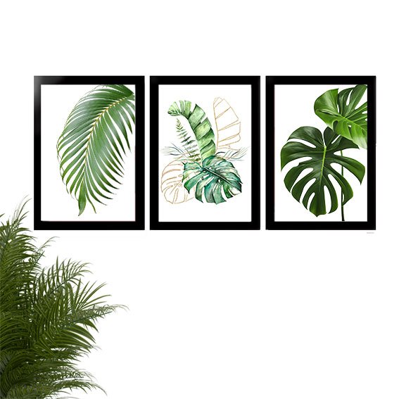 Kit 3 Placas Quadros Decorativos Para Sala Quarto Folhagem Costela De Adão