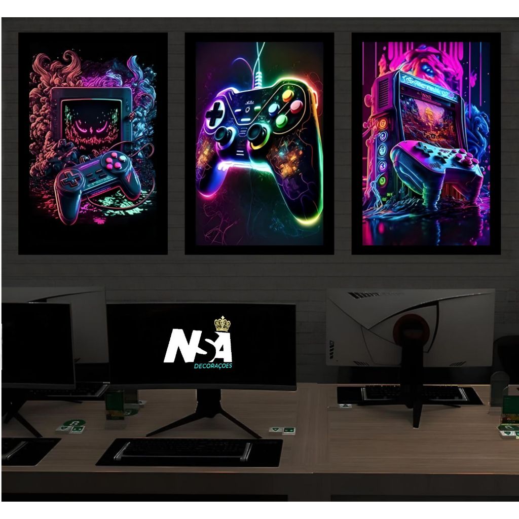 Kit 3 quadros decorativos para sala ,quarto , escritório gamer jogos geek