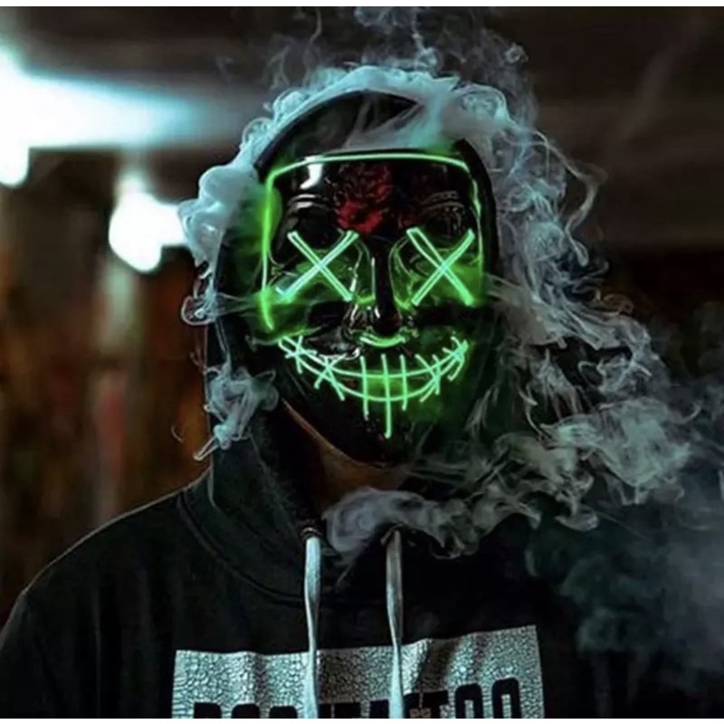 Máscara uma noite de crime com led azul rosa e verde ás cores de luzes mascara