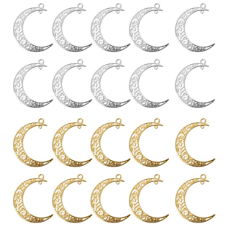 Sss 10pçs Pingente Com Símbolo Da Lua Vazada / Símbolo Da Crescent Filigrana Para Fazer Bijuteria Diy