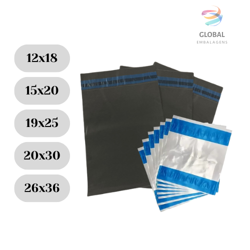 Kit 100 Envelope de Segurança Plástico 12x18 19x25 20x30 26x36 Embalagem Cinza correio para envio Saco com lacre Inviolável para ecommerce