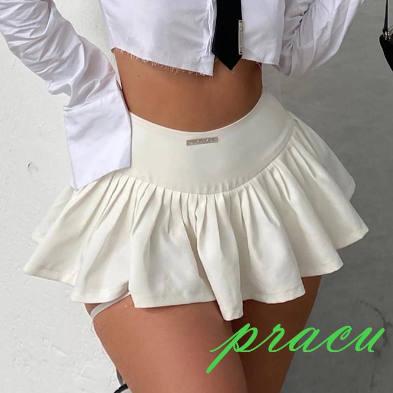 Pracu-Mulheres Y2K Vintage White Micro Mini Saias De Moda Coreana Plissadas