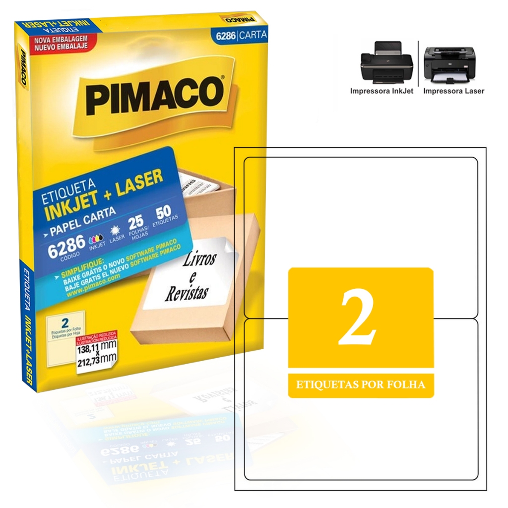 Etiquetas 2 Tamanho 138,11x212,73 Pimaco papel A4 Adesiva Ink-jet/laser 25 Folhas