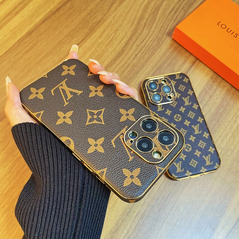Capa De Couro De Luxo Resistente Ao Impacto iPhone 14 13 12 11 Pro Max Retro Leather Hot Stamping LV Proteção da câmera traseira