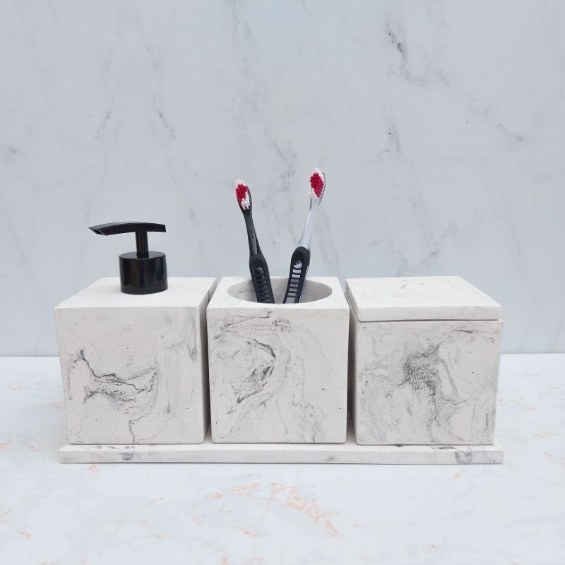 Kit Benim para Lavabo ou banheiro em técnica granilite terrazzo ou marmorizado com saboneteira líquida porta escova cotonete algodão sabonete