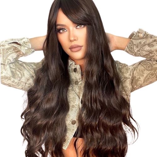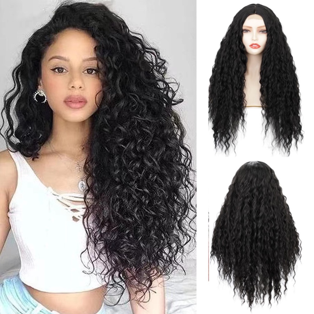 Peruca Longa fibra Orgânica Ondulada Preta,Peruca Ondulada Sem Franja,Peruca Lisa Ondulada Preto Natural Orgânica Premium 45cm Pode Pranchar
