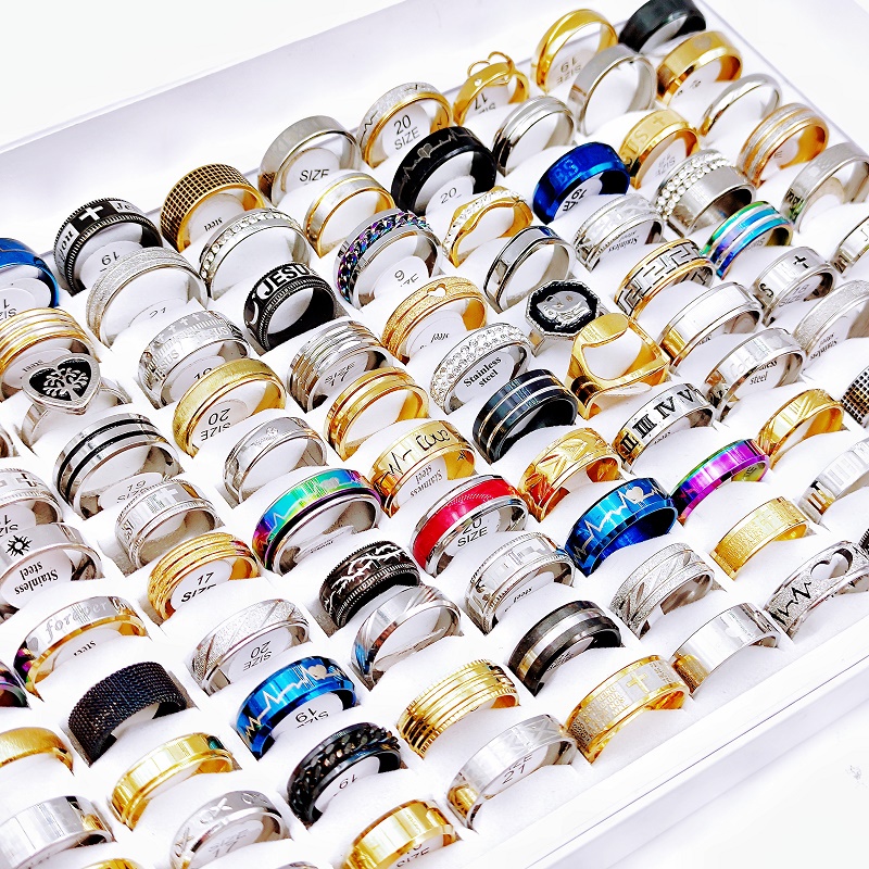 20Pcs/Lote Anéis De Aço Inoxidável Trendy Para Homens Mulheres Estilo Mistura Moda Clássica Listra Oca Cristal Luminoso Jóias De Festa Presente