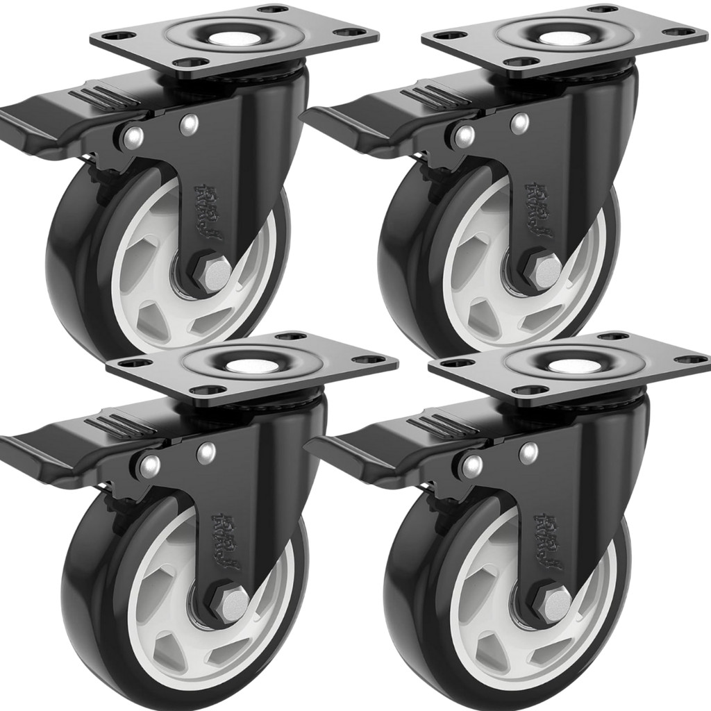 Kit 4 Rodinhas para Móveis Pesados Rodízio Giratório Rodas Giratórias Borracha Com Trava Freio 400kg
