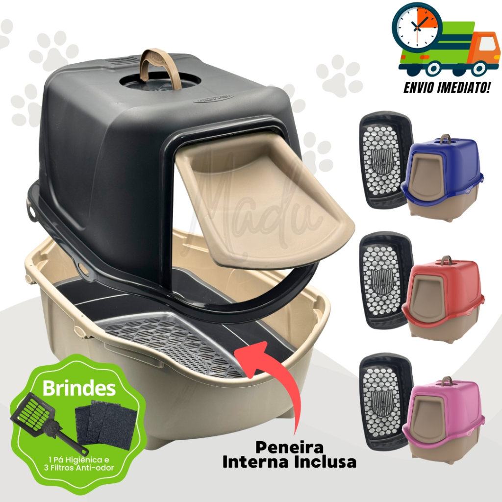 Caixa de Areia Fechada Para Gatos Com Peneira Interna + Pá e Filtro Anti Odor Envio Imediato