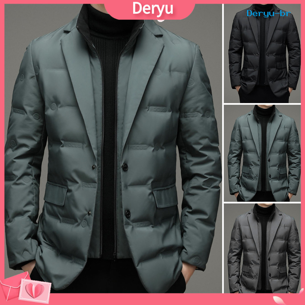 [deryu] Casaco Masculino De Algodão Com Gola Alta , Manga Comprida , Botões , Zíper , Carcela , Jaqueta Falsa , Duas Peç