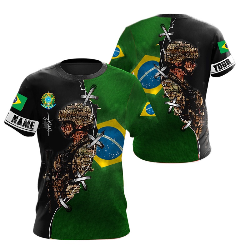Brasil Casual Men's 3D T-Shirt Centennial Flag Print Tops Tees Vestuário Masculino De Verão Pullover O Neck